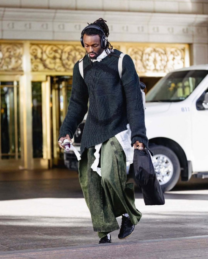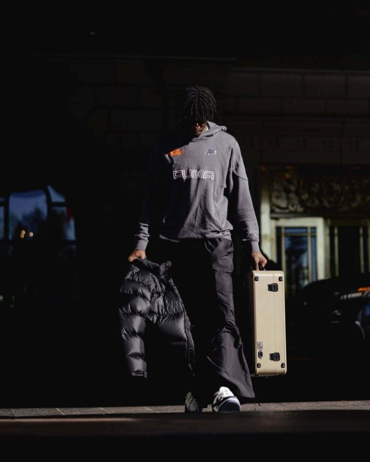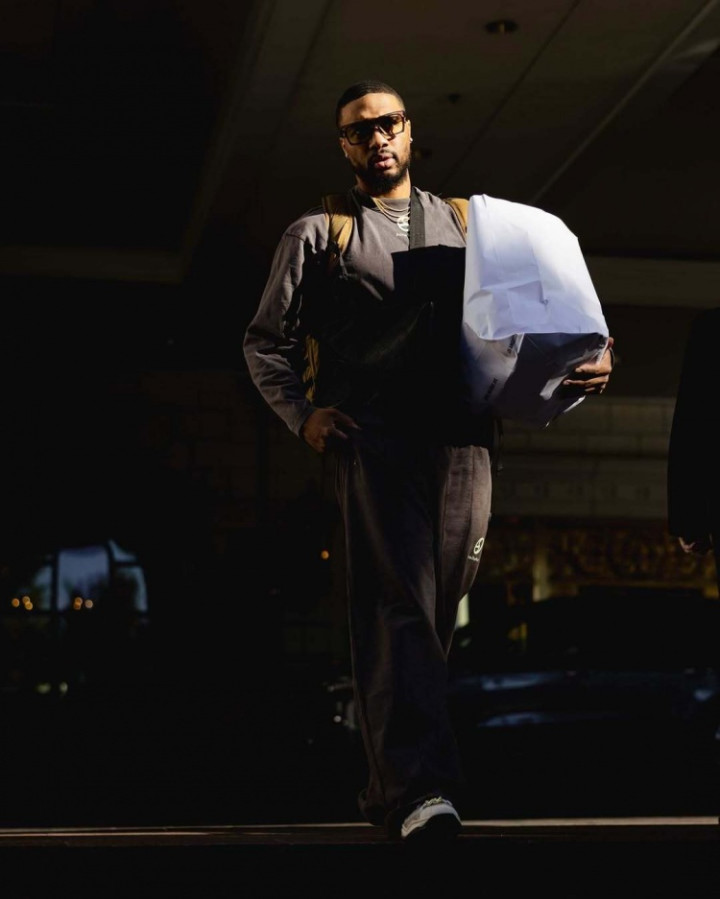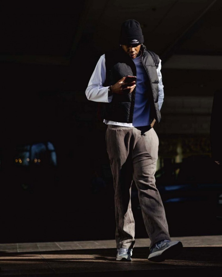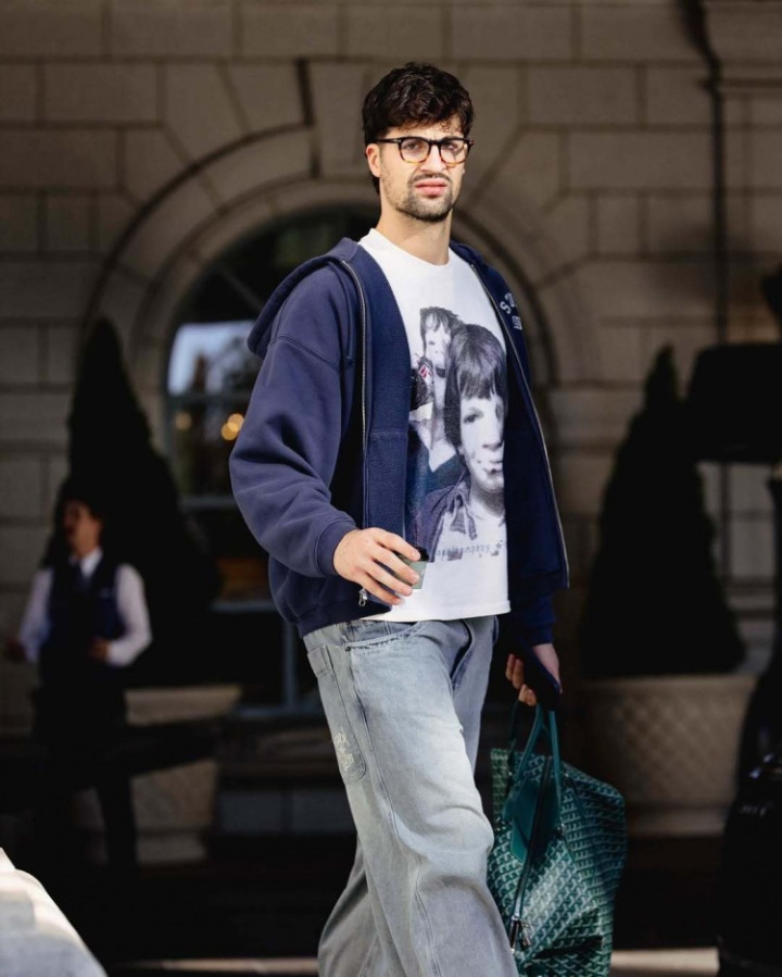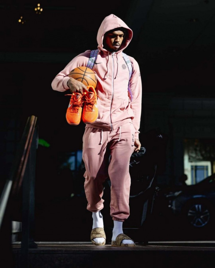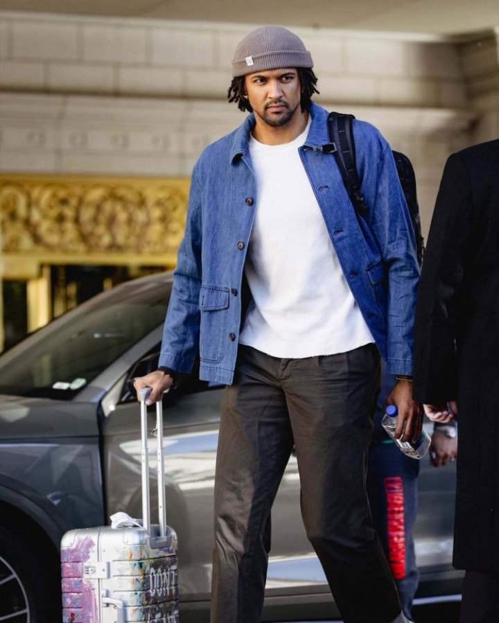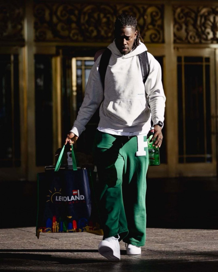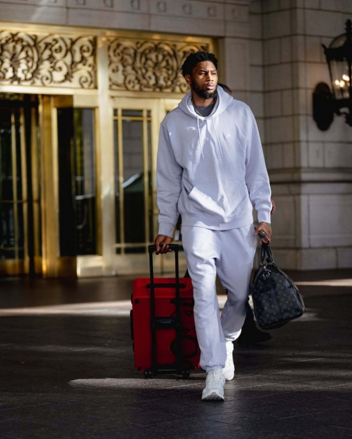 杨瀚森背着粉色小书包 利拉德&阿夫迪亚黑框眼镜 开拓者今日OOTD